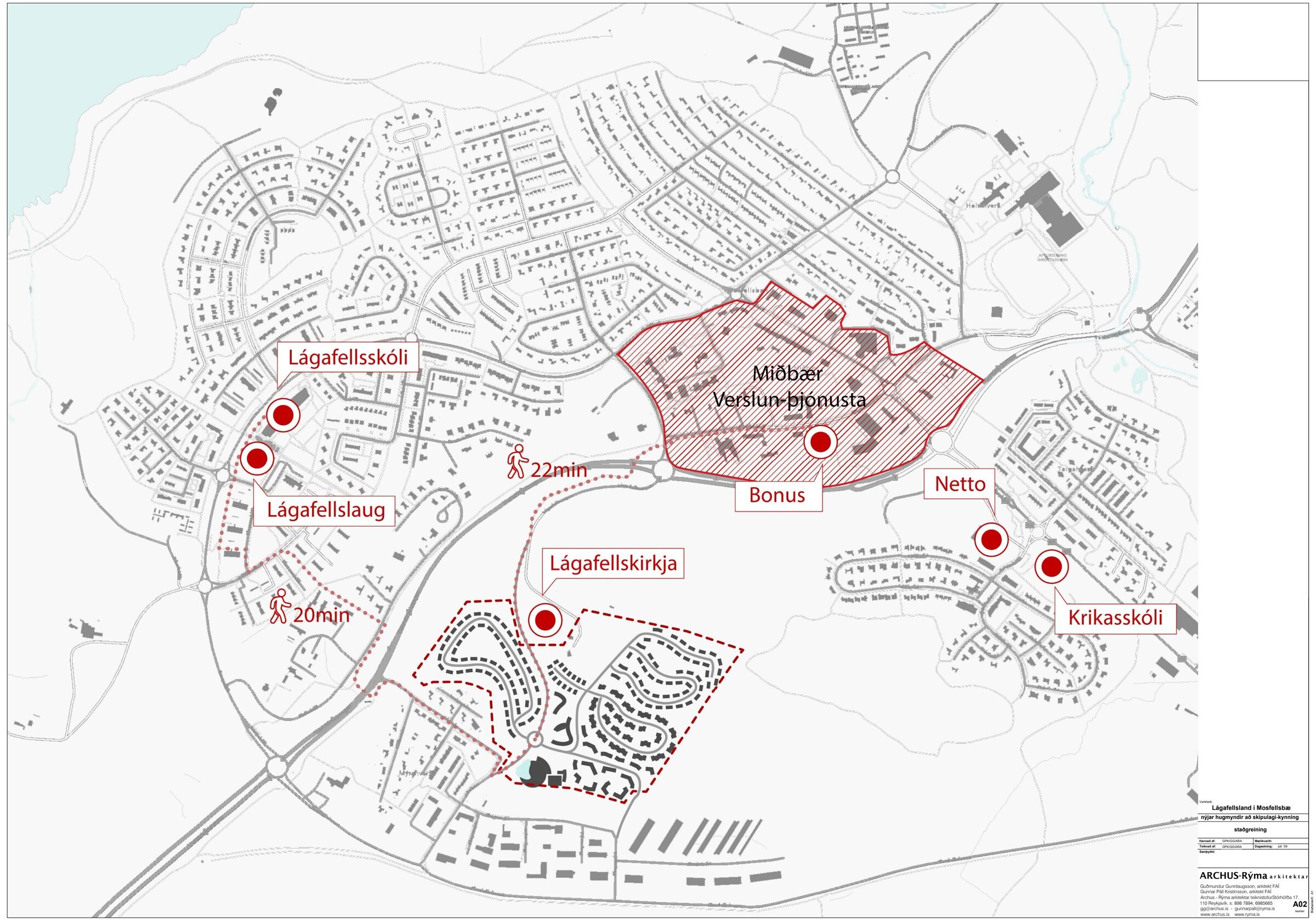 Lágafell liggur miðsvæðis í Mosfellsbæ — stutt í skóla, sundlaug, verslanir og glæsilegan miðbæ. Undirgöng undir Vesturlandsveg gera leiðina að Lágafellsskóla greiða og örugga. Suðurhlíðar með einstöku útsýni, grænt og gisið.